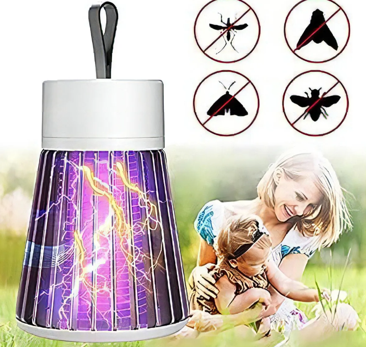 Despídete de los molestos insectos con esta lámpara eléctrica antimosquitos de 5W, ideal para eliminar moscas, zancudos y otros voladores sin necesidad de químicos ni olores. Su luz UV atrae a los insectos, los cuales son eliminados al contacto con la rejilla eléctrica interna.