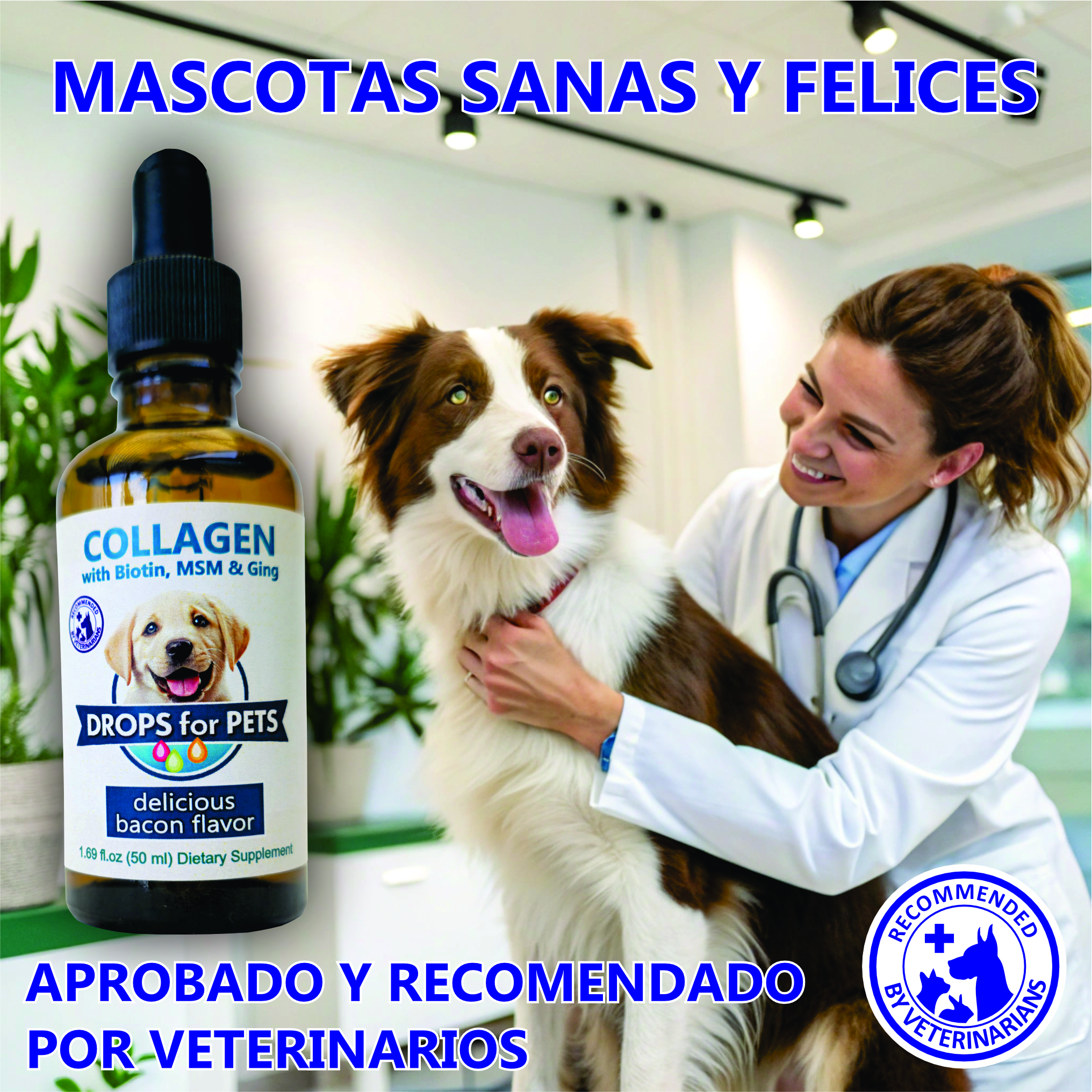 Cuida a tu mejor amigo con las Gotas Naturales de Colágeno para Perros, un suplemento líquido especialmente formulado para promover la salud articular, la movilidad y el bienestar general de tu mascota.