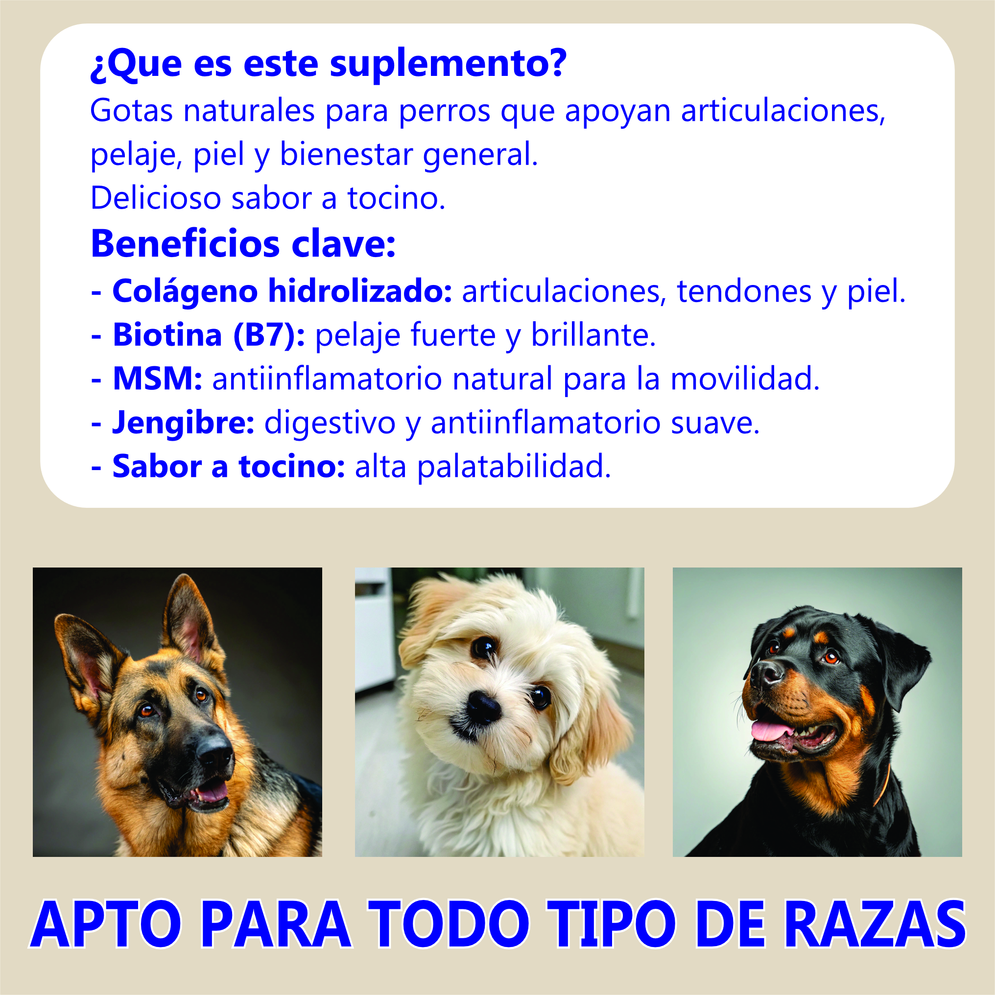 Dale a tu perro la calidad de vida que merece con un cuidado natural y efectivo. Disponible ahora en todoutil.store con envío rápido. ¡Haz que cada paso sea más feliz!