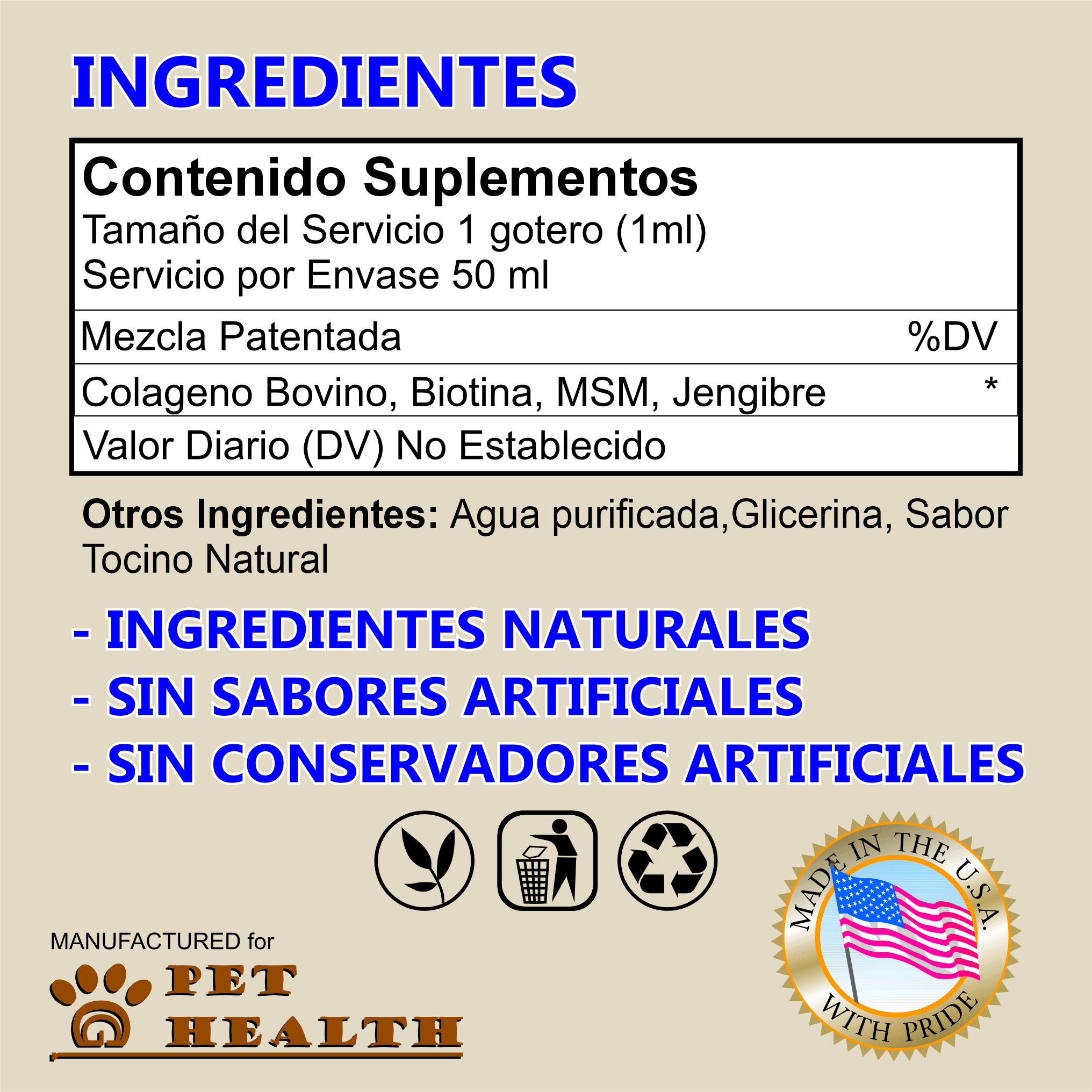 Fácil de administrar, este suplemento en gotas se mezcla con la comida o agua, garantizando una absorción rápida y efectiva. Está hecho con ingredientes naturales, sin químicos ni aditivos dañinos.